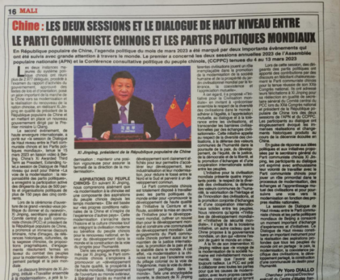 近日,马里国际问题专家迪亚洛在马里《发展报》等主流媒体发表文章,介绍中国共产党与世界政党高层对话会盛况,高度评价习近平主席提出的全球文明倡议。