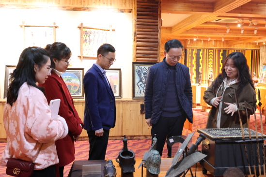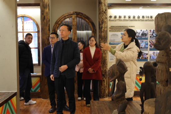 2024年2月27日,宁波奉化区委党校常务副校长庄科裕参观非洲博物馆、中非交流博物馆,志愿者团成员向其介绍馆内藏品情况。