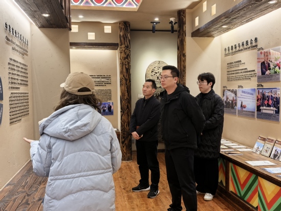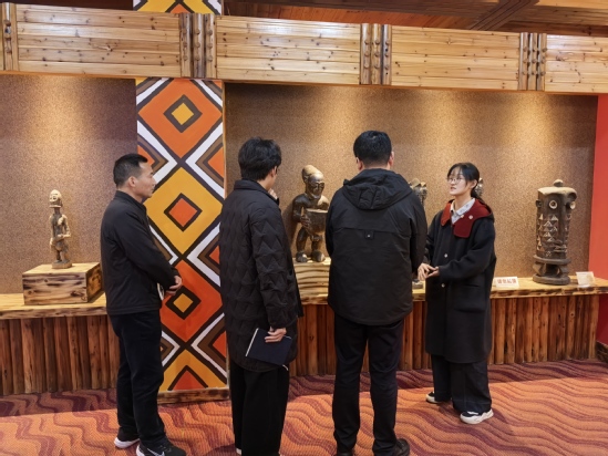 2025年3月12日,兰溪市社科联副主席杨柯一行参观非洲博物馆、中非交流博物馆,志愿者团成员向其介绍馆内藏品情况。