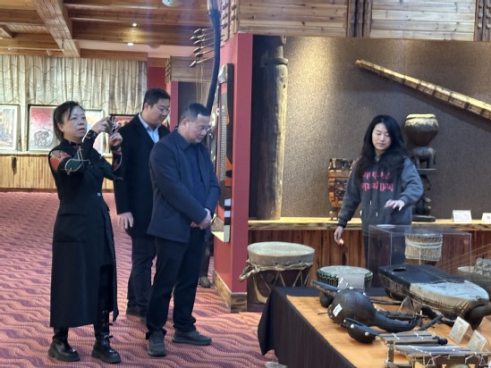 2025年3月21日,江西师范大学数学与统计学院党委书记肖子良一行参观非洲博物馆、中非交流博物馆,志愿者团成员向其介绍馆内藏品情况。