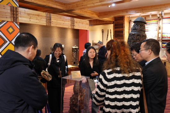 2025年4月12日,全国大学生数学竞赛工作组专家、各赛区负责人参观参观非洲博物馆、中非交流博物馆,志愿者团成员向其介绍馆内藏品情况。
