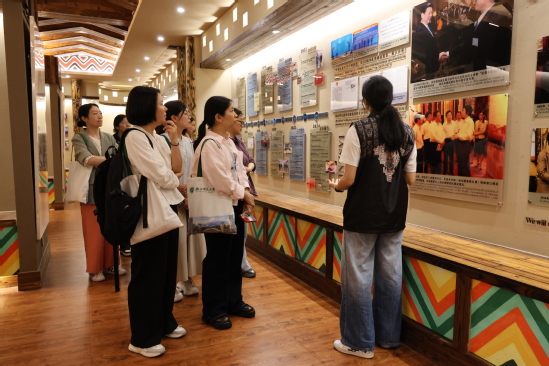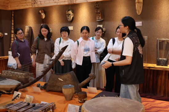2025年4月22日,龙泉市中小学教师研修班学员60人参观非洲博物馆、中非交流博物馆,志愿者团成员向其介绍馆内藏品情况。