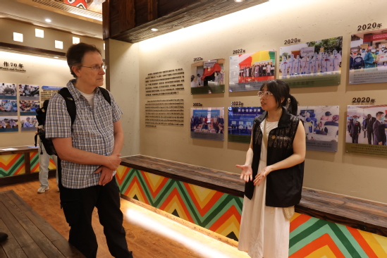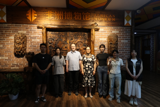 2025年5月22日,德国拜罗伊特大学Andreas Christmann教授参观非洲博物馆、中非交流博物馆,博物馆志愿者团成员向其详细介绍馆内藏品。