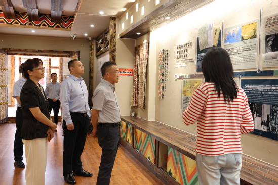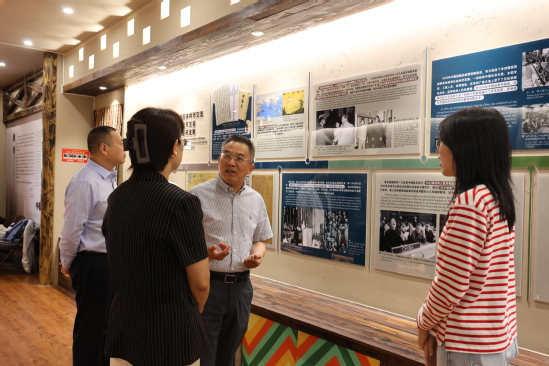 2025年5月29日金华成泰农商银行党委书记、董事长廖根勇,党委副书记、行长王建军来我校交流并参观非洲博物馆、中非交流博物馆,志愿者团成员商盈向其详细介绍馆内藏品。