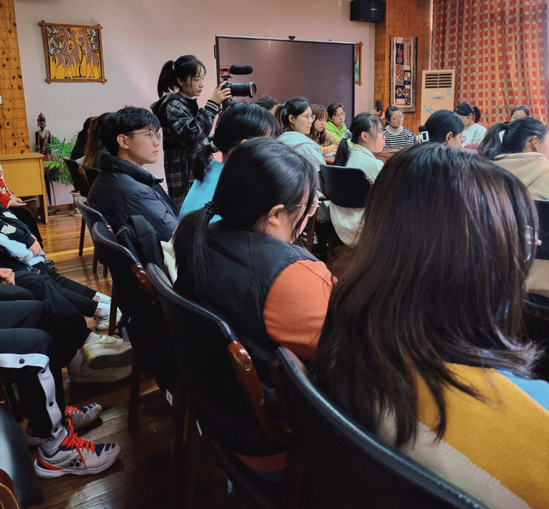 刘院长在讲座中说到博物馆是很好的知识传播平台,它面向大众、面向公众,做博物馆学的人需要学问高深,但又要用通俗的语言对外进行讲解。“过去十年里有大量的来自世界各地的人员来参观,尤其是从非洲远道而来的访客,看到金华有这样的非洲博物馆,他们都会倍感温暖、亲切。”刘院长回忆起非洲博物馆发展十一年来的点滴,他认为非博承载的人文内涵是非常丰富的,作为一个综合性的博物馆,博物馆里有兵器、法器、乐器等藏品,都可以为同学们进行深度研究提供丰富的资源,他鼓励志愿者们在工作时可以去钻研博物馆里的一些藏品,探索每一件藏品背后的历史与文化,不仅拓宽自己的知识面,也为博物馆的文化建设做出贡献。