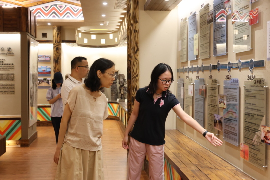 2025年9月11日,浙江理工大学统战部常务副部长徐颖云参观非洲博物馆、中非交流博物馆,博物馆志愿团成员解峥妍围绕馆藏特色介绍藏品。