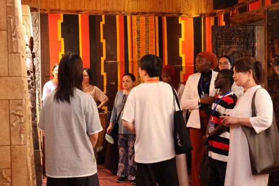 2025年9月15日,发展中国家卓越教师培养研修班学员前往非洲博物馆、中非交流博物馆参观,馆内志愿者团成员解峥妍、张烨佳以馆藏特色为核心,向团队详细讲解藏品相关细节。