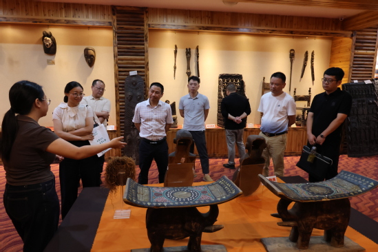 2025年9月22日,安徽池州市教育和体育局工作人员前往非洲博物馆、中非交流博物馆参观,馆内志愿者团成员余曙合向参观者详细介绍馆内藏品。