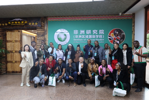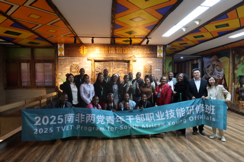 2025年11月8日,南非两党青年干部职业技能研修班学员参观非洲博物馆、中非交流博物馆,讲解团成员向参观团介绍馆内藏品。