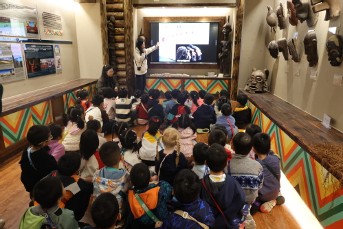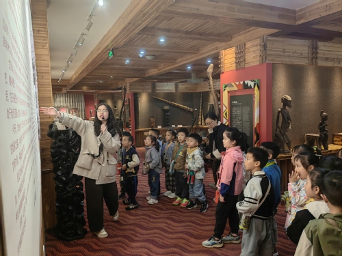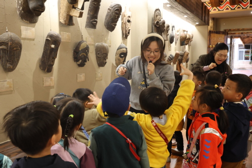 2025年11月13日,浙师大幼儿园大班的小朋友参观非洲博物馆、中非交流博物馆,志愿者团成员余文芳,黄晋楠带领孩子们近距离接触馆内藏品,感受非洲文化魅力。