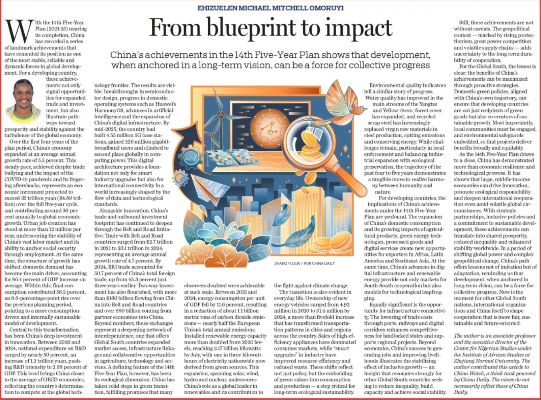 Dr. Ehizuelen Michael Mitchell Omoruyi published an article onChina Daily titled “From Blueprint to Impact”, praising China’s 14th Five-Year achievements. TheInstitute of African Studies, Zhejiang Normal University contributed expert analysis that highlighted China’s development pathways and their significance for the Global South today.