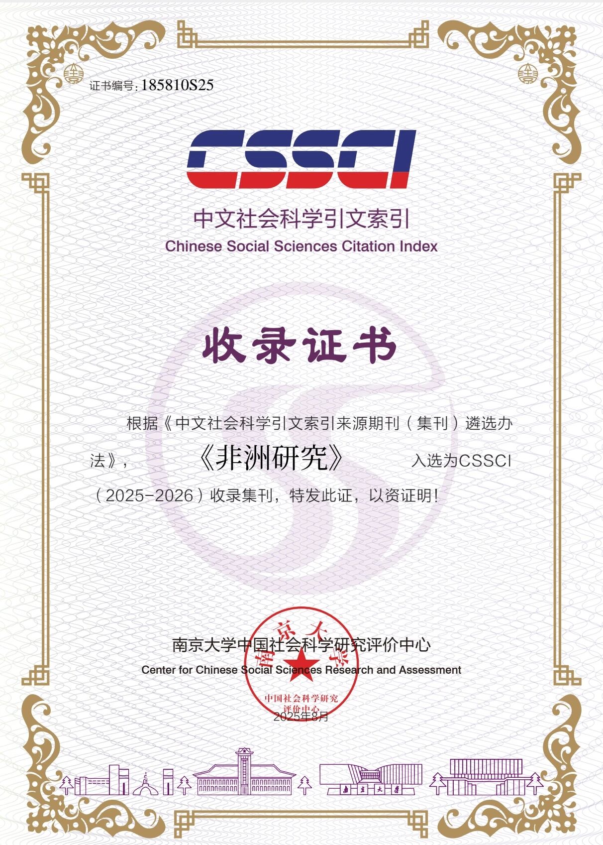 The Institute of African Studies, Zhejiang Normal University’s journal “African Studies” was selected for inclusion in CSSCI (2025-2026), marking its third consecutive selection since 2021. Founded in 2010 byDirector-General Liu Hongwu, this comprehensive academic publication on African research has maintained stable quality and received sustained recognition from the academic community.