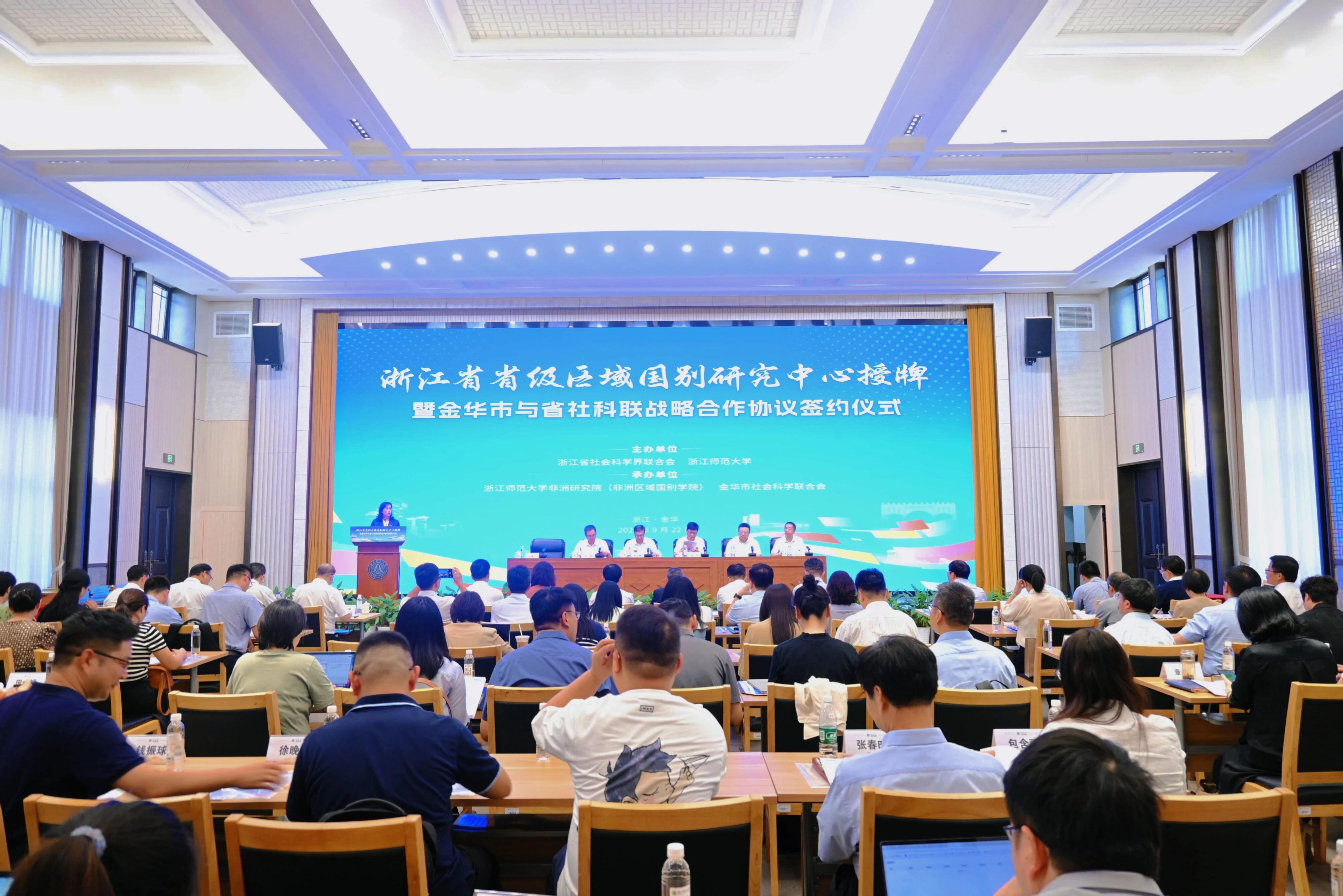 The plaque-awarding ceremony of Zhejiang Provincial Regional and Country Research Center was held at Zhejiang Normal University. The event signified the formal designation ofthe Institute of African Studies, Zhejiang Normal University as a provincial-level research hub and served to establish strategic cooperation between Jinhua City and the Provincial Social Science Association.