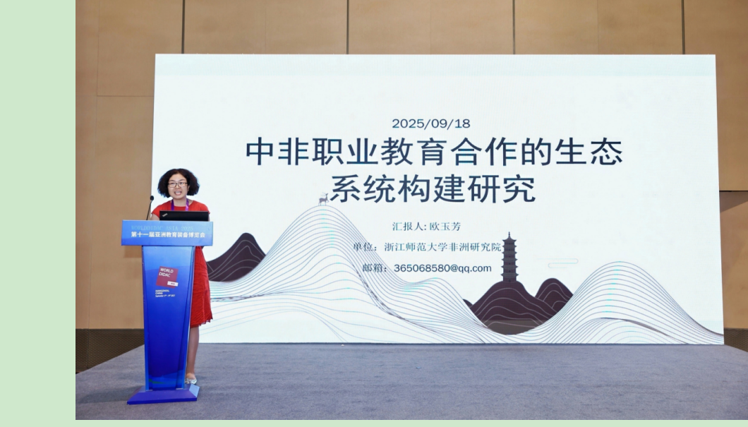 Dr. Ou Yufang delivered a report at the Asian TVET Seminar, presenting a new ecosystem model for China-Africa vocational education cooperation, highlighting the institute’s research leadership and policy-oriented academic contribution.
