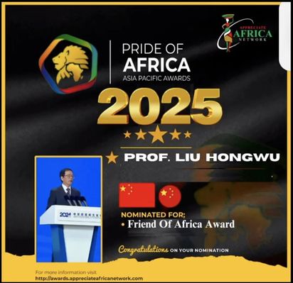 Director-General & Prof. Liu Hongwu ofthe Institute of African Studies, Zhejiang Normal University was awarded the "Friend of Africa Award" for his outstanding contributions to African development and China-Africa cooperation at the 11th Pride of Africa Asia Pacific Awards in Beijing on June 28, following his nomination by the Nigerian Embassy in China.
